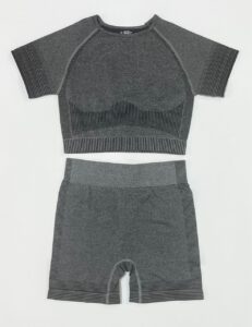 ست ورزشی دو تکه سیملس (Seamless) | کراپ آستین‌دار و شلوارک گنی (۳ رنگ)