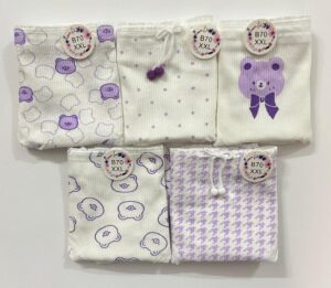 ویژگی: دارای فاق دو لایه نخی جهت حفظ بهداشت و جلوگیری از حساسیت.