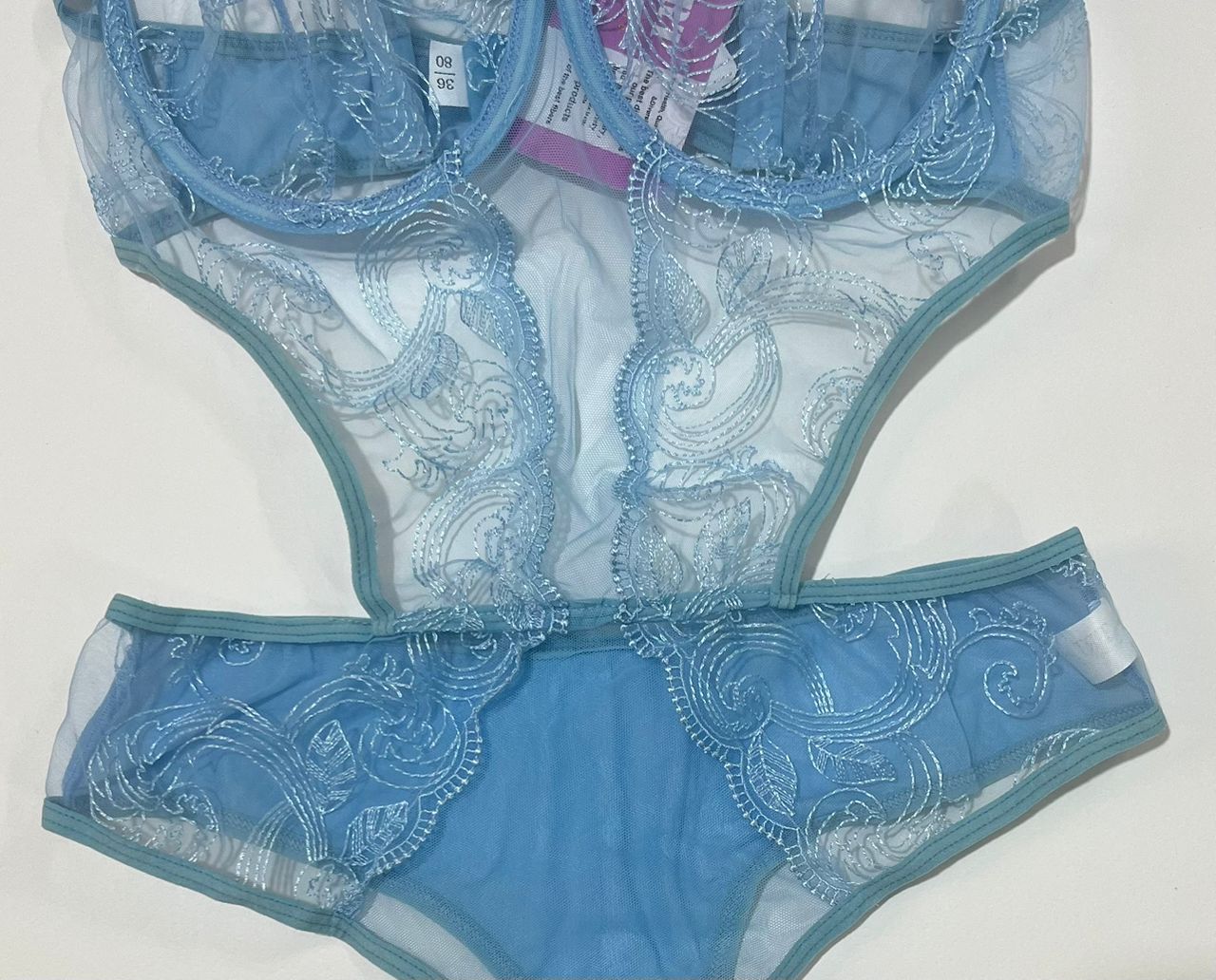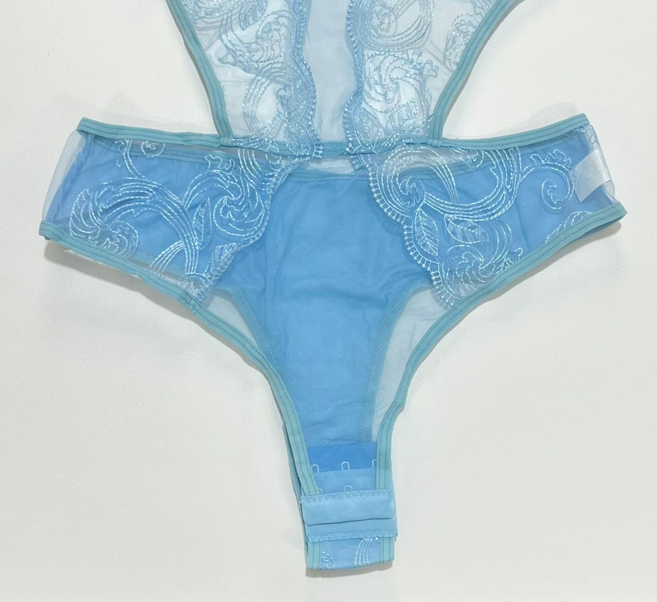 این بادی یک تکه فانتزی، یک شاهکار از ترکیب ظرافت، طراحی مدرن و رنگی آسمانی است. طراحی منحصربهفرد این کار به سبک مونوکینی است؛ به این معنی که قسمت سوتین و شورت از جلو به هم متصل هستند اما پهلوها کاملاً باز بوده و جلوهای بسیار جذاب و خاص به اندام شما میبخشد.