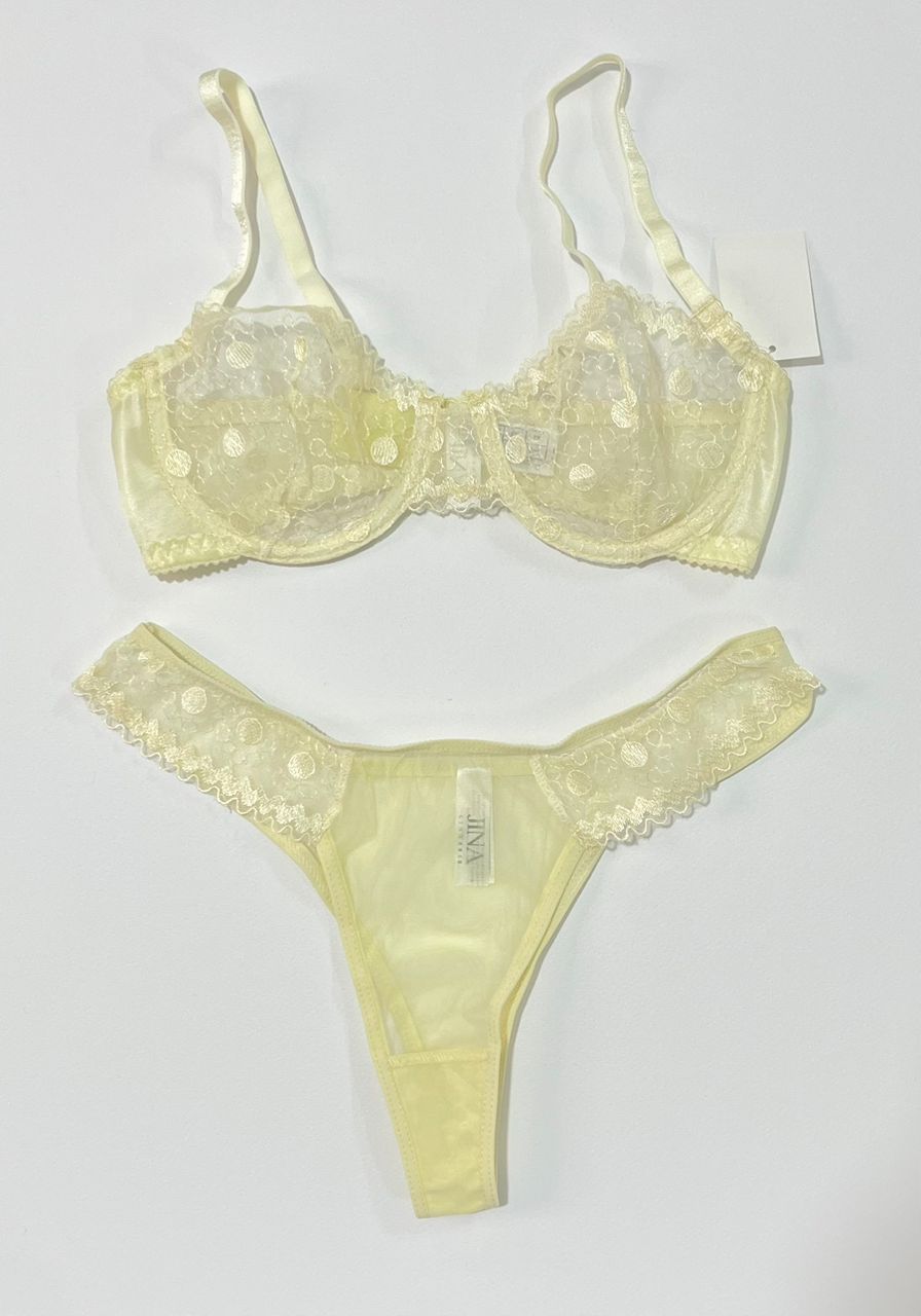 یکی از جذابترین ویژگیهای این ست لباس زیر، استفاده از پارچه تور بدننما (Sheer) با پترن خالدار (توپتوپی) برجسته است. این سبک طراحی در عین سادگی، بسیار مدرن و فانتزی بوده و لطافت بینظیری روی پوست ایجاد میکند. نوار دالبری شکل لبههای سوتین و شورت، ظرافت زنانه این محصول را دوچندان کرده است.