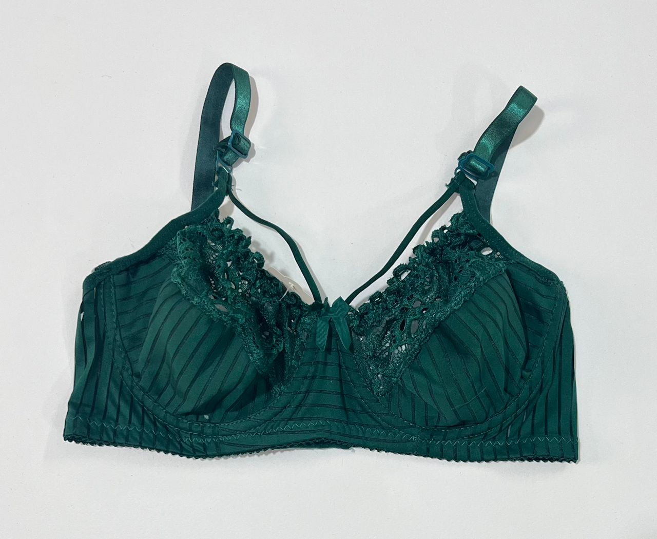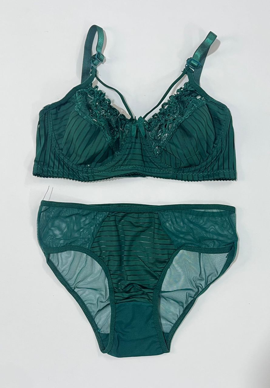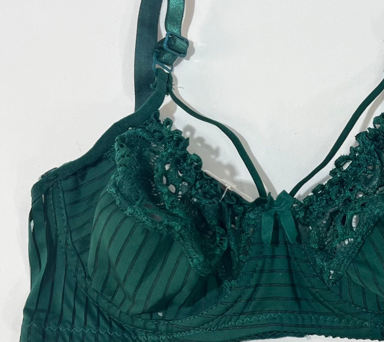 سوتین این ست به صورت فنردار طراحی شده است که فرمدهی بسیار عالی به سینهها میدهد، اما فاقد اسفنج است تا حالت طبیعی بدن حفظ شود. مهمترین ویژگی ظاهری آن، وجود بندهای تزئینی هارنس در قسمت بالای کاپ و ترکیب آن با گیپوری ظریف است که جلوهای بینظیر روی پوست ایجاد میکند. در قسمت پشت، این سوتین دارای قزنهای ۳ ردیفه است که به شما اجازه میدهد سایز را دقیقاً متناسب با دور سینه خود تنظیم کنید.
