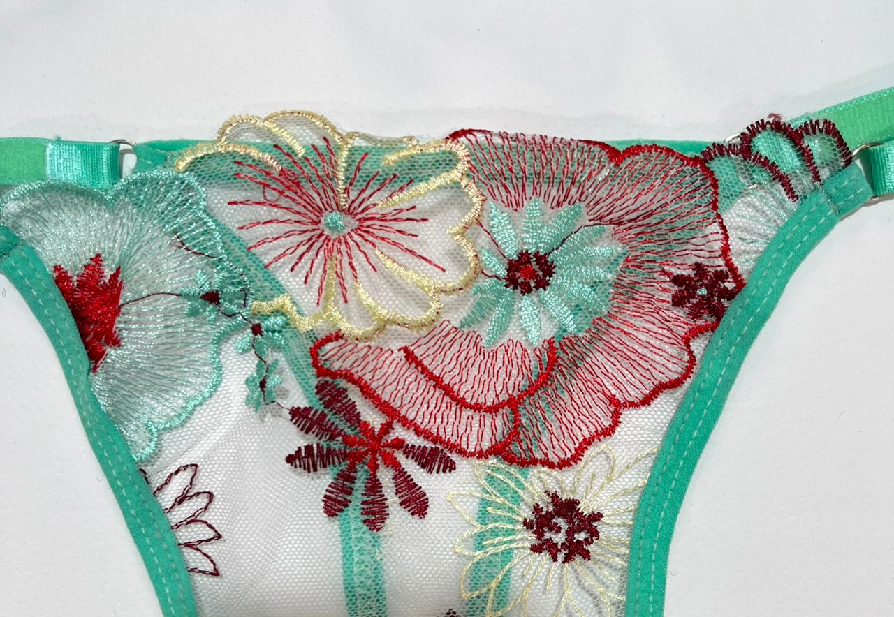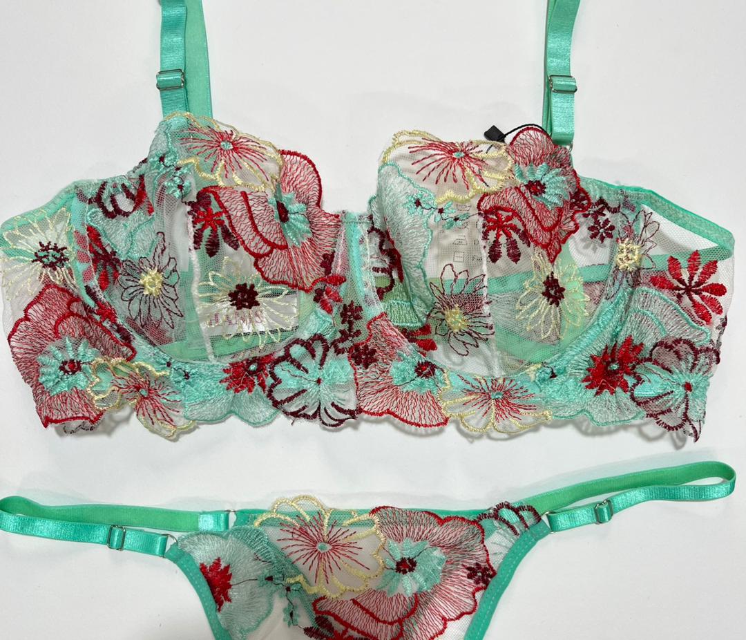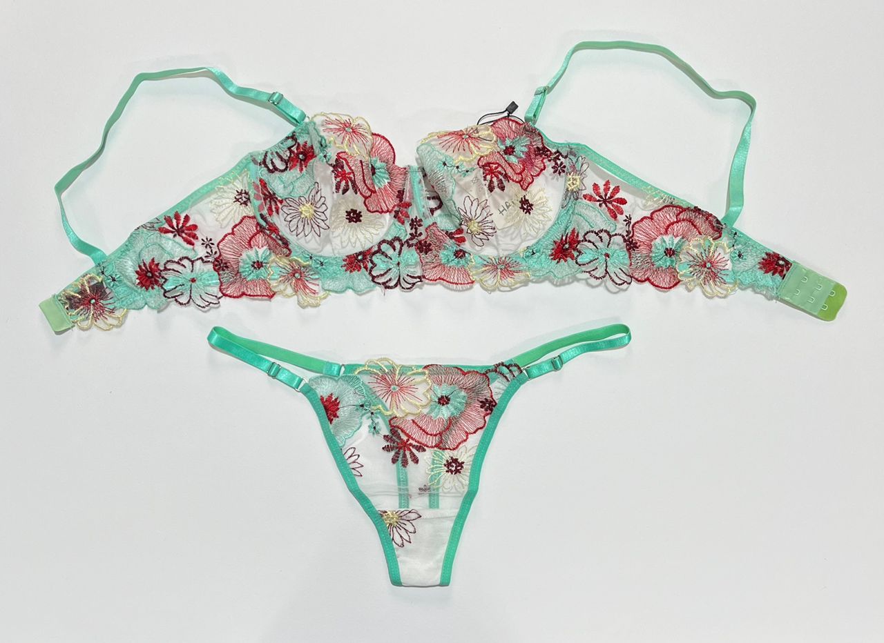 ست گلدوزی شده سبز نعنایی، ترکیبی هنرمندانه از رنگهای آرامشبخش و طرحهای پرشور است. رنگ زمینه این کار که به سبز تیفانی یا نعنایی معروف است، یکی از ترندهای اصلی لباس زیر در فصل جدید محسوب میشود و با هر تناژ پوستی (چه روشن و چه برنزه) همخوانی فوقالعادهای دارد.
